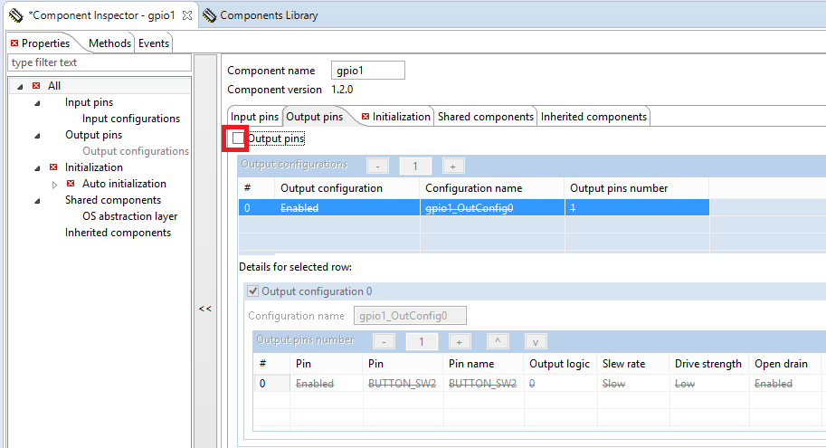- Click on the “Component Inspector” tab. Enable the clock gate and untick the "MPU module" checkbox. That will disable the MPU.