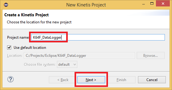 Set location to KSDK path, I use an absolute path but you can select Environment variable if you have set up a path under Windows operating system environment variables with a name called “KSDK_PATH” that points to the location of the KSDK folder. The location of my KSDK is in the default location where KSDK would install to.